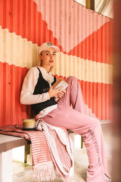 デザイン:リブ編みのウエストバンド。サイドシームスリット付きのストレートレッグオープン。